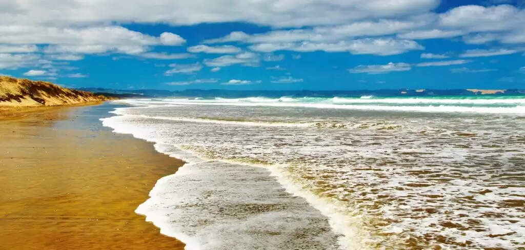 The grandeur of Ninety Mile Beach in New Zealand is one that can be described as paradise-like. Although it is not actually 90 miles in length, it still possesses an awe-inspiring beauty with its high sand dunes and lush vegetation. It is strange to understand that the Ninety Mile Beach is actually a highway, yet despite this fact, its beautiful landscape and reputation for having one of the best left-hand surf spots in the world continues to attract an abundance of travelers throughout the year.