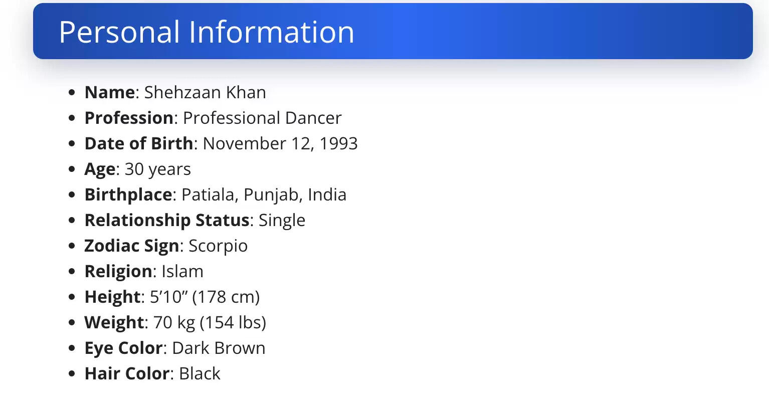 Shehzaan Khan was born on November 12, 1993, in Patiala, Punjab, India. He grew up in a family that had a great cultural background where music and dance were highly appreciated. His parents encouraged Shehzaan from an early age to dive into the arts. At a very early age, he began training in various dance forms. After having completed his schooling in Patiala, Shehzaan shifted to Delhi, which marked the start of his professional career to pursue his passion for dance.